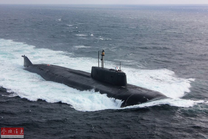 “波塞冬”鱼雷可由俄军核潜艇以外挂方式发射,按俄军计划,一艘奥斯卡II级巡航导弹核潜艇(水下排水量近2万吨)可外挂4枚“波塞冬”核动力鱼雷。图为奥斯卡II级“奥廖尔”号核潜艇与无畏级驱逐舰编队航行资料图,可见尺寸远大于后者。
