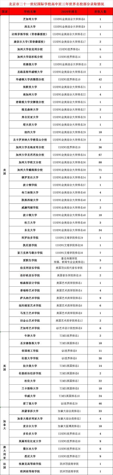 近年来,北京市二十一世纪国际学校升学成绩不断攀升,亮点纷呈。高中毕业生分别被英国牛津大学、美国康奈尔大学(藤校)、达特茅斯学院(藤校)、美国芝加哥大学、美国加州大学伯克利分校、美国加州大学洛杉矶分校、英国帝国理工学院、美国西北大学、英国伦敦大学学院、美国范德堡大学、美国华盛顿大学、美国纽约大学、加拿大多伦多大学、西蒙菲莎大学、麦吉尔大学、英属哥伦比亚大学、澳大利亚悉尼大学、墨尔本大学等世界顶级名校录取。根据U.S.News、QS、TIMES等权威机构排名,学校进入世界前50、美国前50、英国前10位大学的毕业生2018年达84.9%,2019年达82.3%,2020年达86.3%!