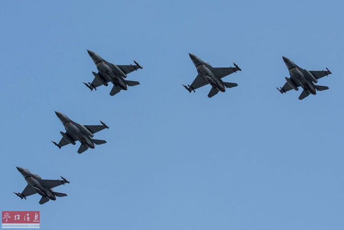 波兰空军F-16战机编队通场表演。