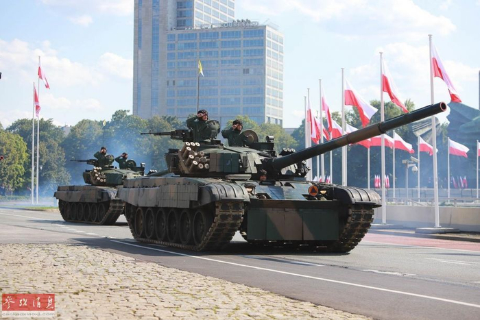 据波兰国防部8月15日消息称,波兰军方当天在位于该国南部的卡托维兹举行盛大阅兵式,除波兰军方出动大批武器装备外,美军也派出了M1A2主战坦克、F-15E战斗轰炸机等装备参加,针对俄罗斯意味明显。图为参加阅兵的波兰陆军PT-91主战坦克。
