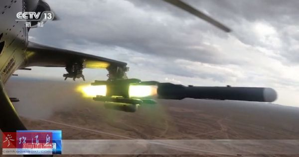 资料图片:央视新闻的视频截图显示武直-10发射了一枚疑似新型空地导弹。(英国《简氏防务周刊》网站)
