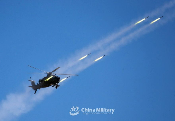 中国社交媒体平台出现的一张图片显示,一架昌河飞机工业(集团)有限责任公司研发的武直-10武装直升机发射了一枚疑似新型空地导弹,表明中国陆军航空兵部队要么已经装备了这种导弹,要么正在对其进行测试。