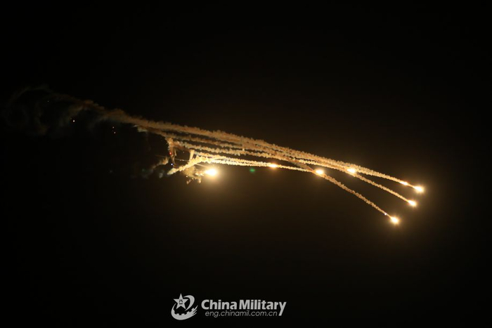 直-10在夜训中释放红外干扰弹。(图片来源:中国军网)