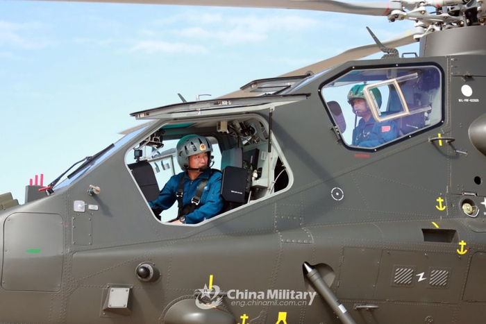 直-10飞行员在起飞前进行预飞检查。(图片来源:中国军网)