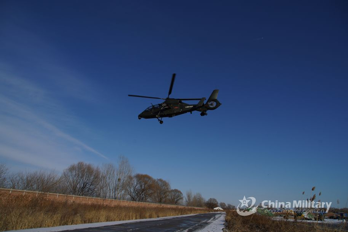 直-19以树梢高度进行超低空飞行。(图片来源:中国军网)