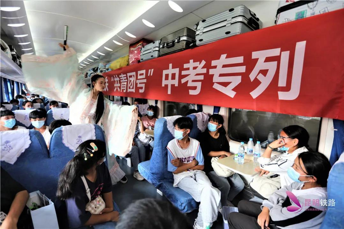 去年6月底,昆明局集团公司主动联系两所学校,为826名中考考生定制火车出行方案,通过将7452次列车终到站红果站延长至富源站的方法,开行中考专列,方便826名异地考生参加中考。今年,两所学校再次与车站联合开行中考专列。昆明车务段派出工作人员,为校方提供优质服务,提前将考生购票信息单送至学校负责此事的老师手中。
