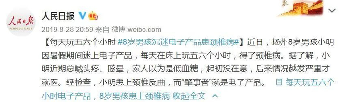 “游戏是家长的天敌”,相信很多家长深有体会。此前有媒体报道称,一名8岁男孩小明因暑假期间沉迷电子产品,每天玩5、6个小时,最后患上颈椎反曲,正常人的颈椎是正曲,而长时间低头会造成反曲,就像鹅头一样。