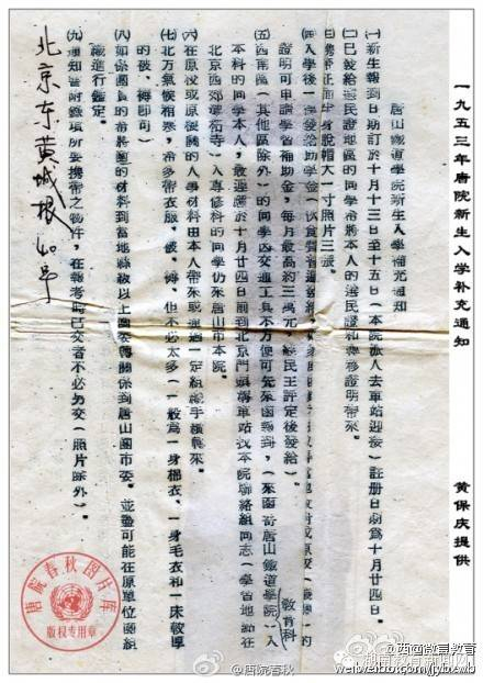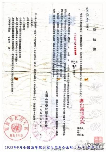 中华人民共和国成立后,五十年代的录取通知书长这样——