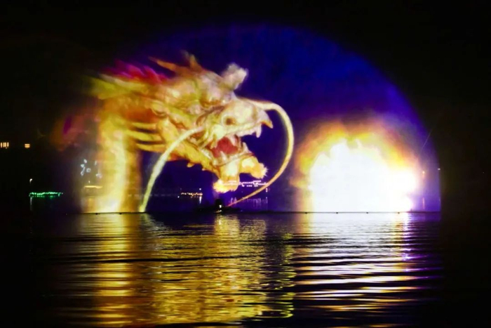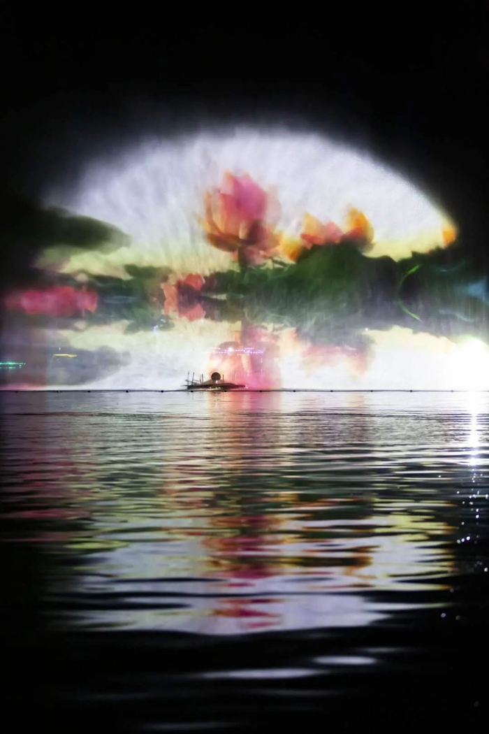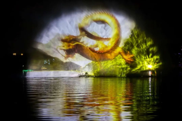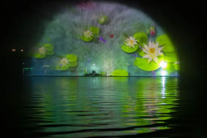 当天晚上,记者在现场看到,在南湖公园四亭桥附近湖面上展现出来的“水幕灯光秀”是以水幕为载体,将投影设备不同角度影像投射,实现全息立体影像,利用光学透视效果,使呈现出的画面更有立体感,让广大游客如同身临其境般,画面效果更加美轮美奂,力求建成春城新一网红打卡地标。