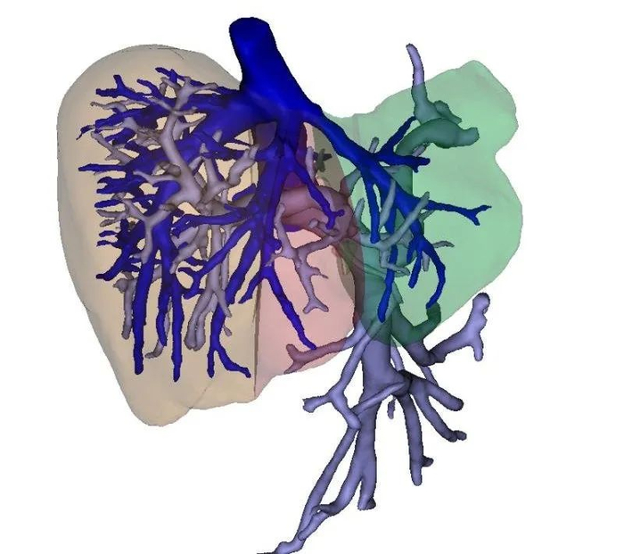 为了手术能够顺利进行,肝脏外科(肝移植)团队做了精密的测算和术前规划,将各种可能的发生情况考虑在内。他们根据CT等各项检查结果,采用三维重建技术,分析了供体肝脏血管和胆道的情况;同时,详细计算供肝与受体肝脏的标准体积比、质量比等数据,最大程度保证供肝在劈离后分别能在各自的患者体内发挥功能。