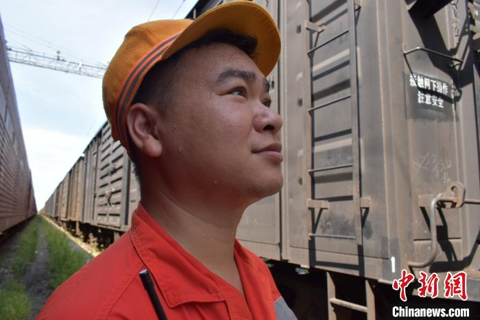 作业现场没有任何遮挡,就像一个洗桑拿的“大蒸笼”。列车进站时,检车员站立在股道两边的安全距离内迎接列车进站。 付顺明 摄