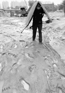 当天12时,山西晚报记者准备离开时,问谢师傅什么时候能走,他说:“水排不完、见不着路面我们就不会离开。”