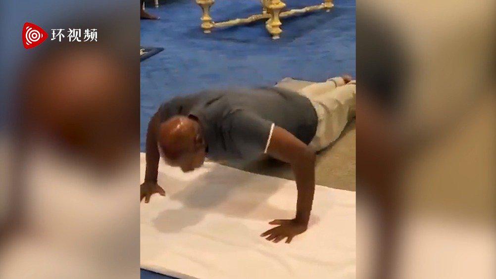 75岁乌干达总统连做40个俯卧撑,鼓励民众疫情期间保持健康
