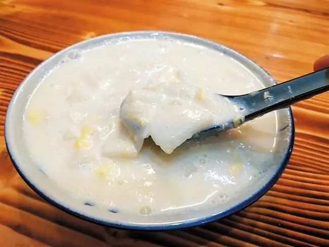 潮汕豆浆和其他地方的也大不相同。潮汕人在纯豆浆的基础上,或是加入薄如蝉翼的本地特产姜薯片,或是打入一个新鲜的土鸡蛋,或是加上养颜美容的桃胶雪燕……花样翻出,原本平淡的豆浆每一口都是惊喜,一大碗都是料,满足了胃,也满足了心。