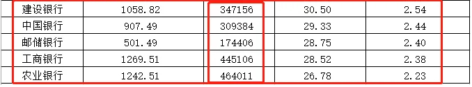 值得注意的是,去年农业银行和工商银行月工资垫底,分别为2.23万元、2.38万元,邮储银行、中国银行、建设银行也排名靠后,月薪均不到2.6万元。