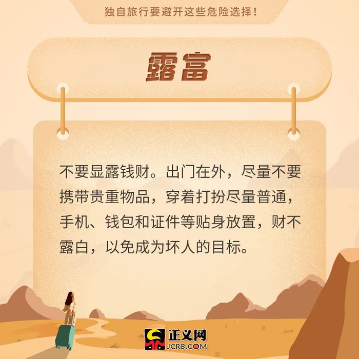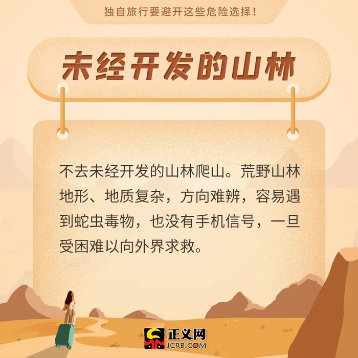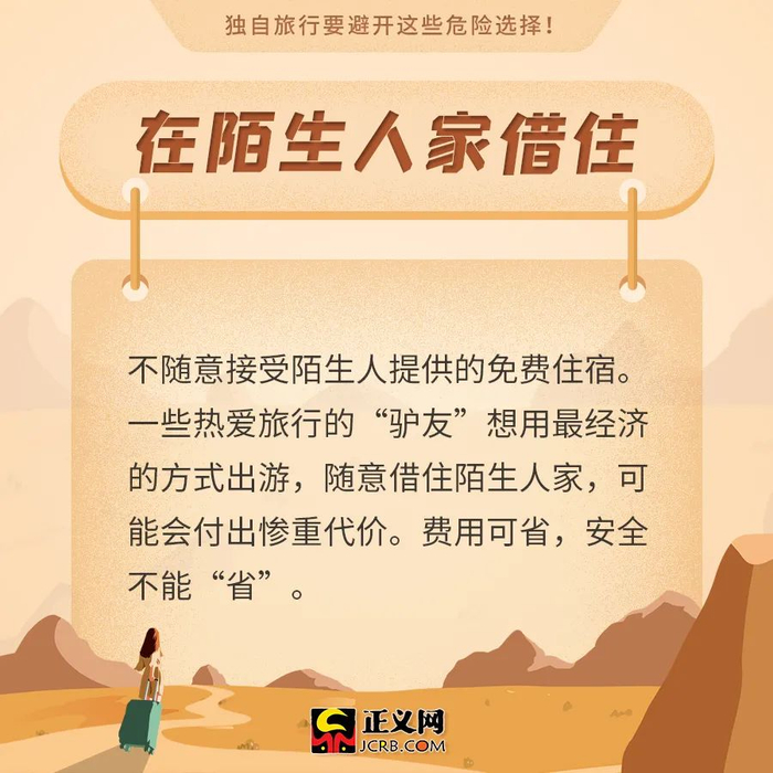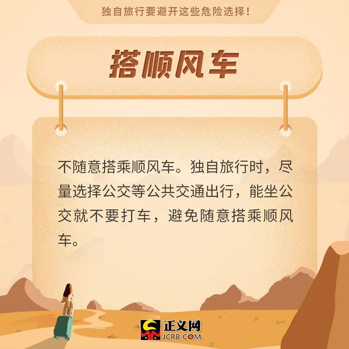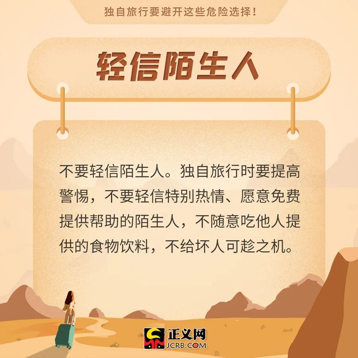 原标题:安全提示!独自旅行要避开这些危险选择!