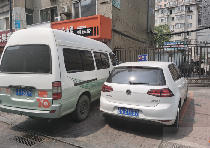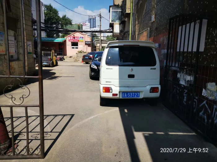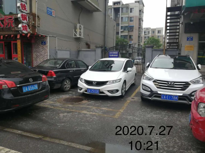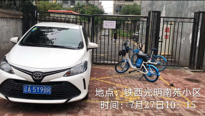 问题:小区南门车辆吉A21EB7、辽A16D7G占用消防车通道。