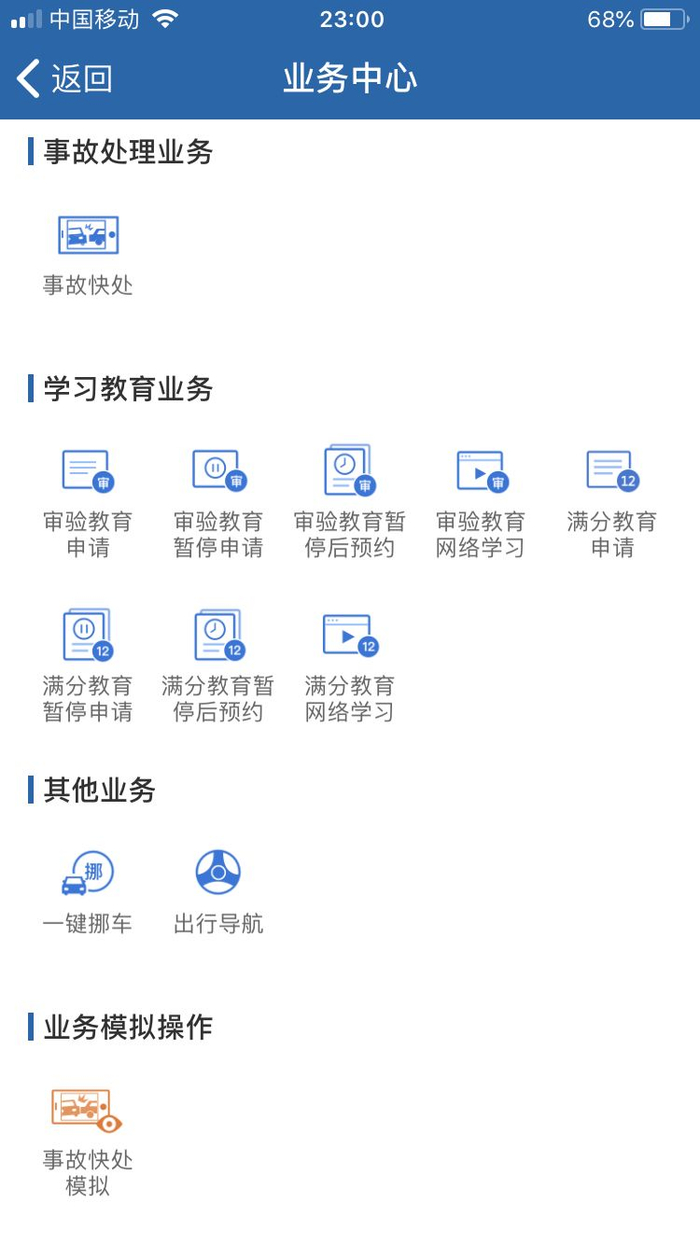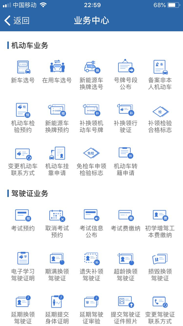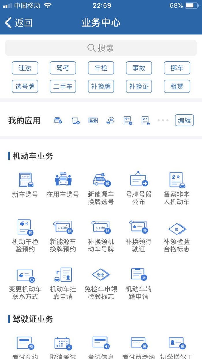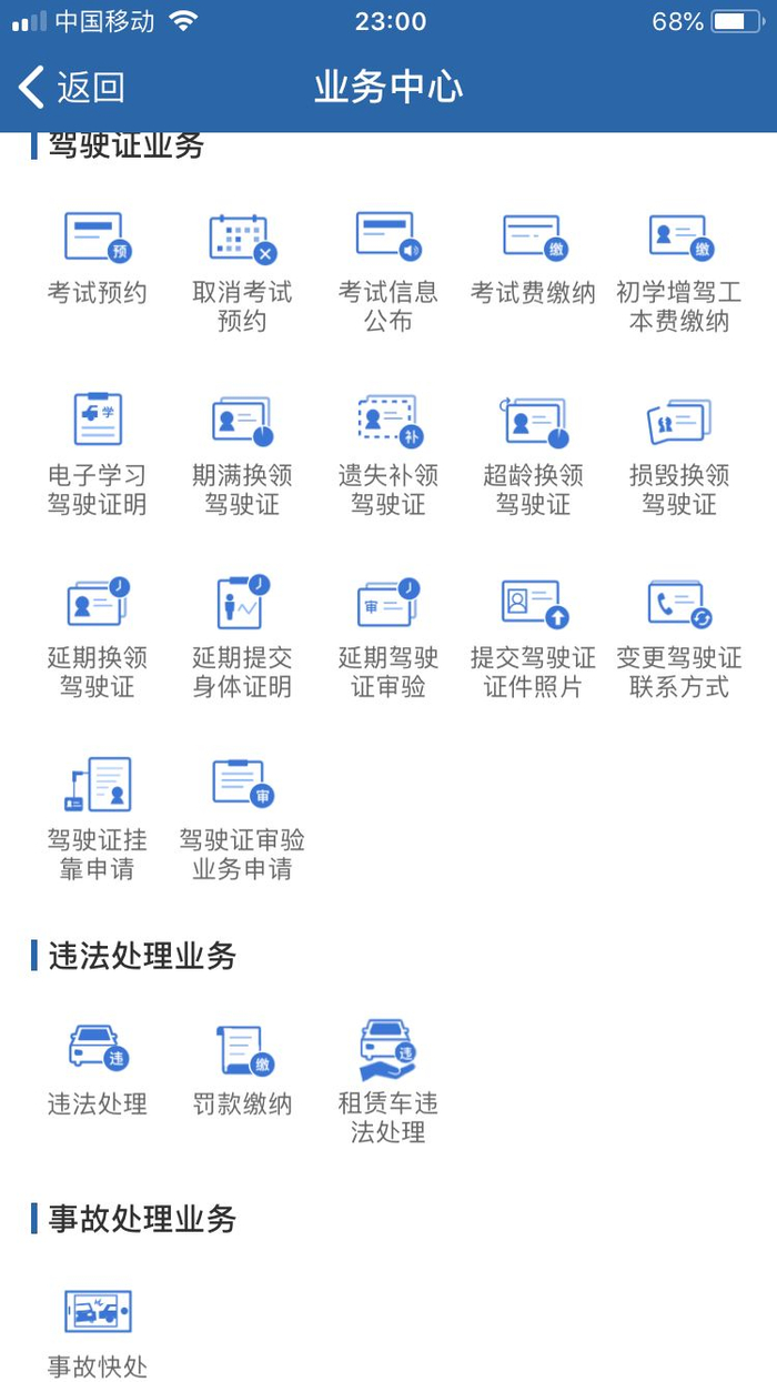 (驾考预约、驾驶证审验、期满换证、遗失补证、超龄换证、损毁换证、延期换证/提交身体条件证明/审验、变更驾驶证联系方式等)