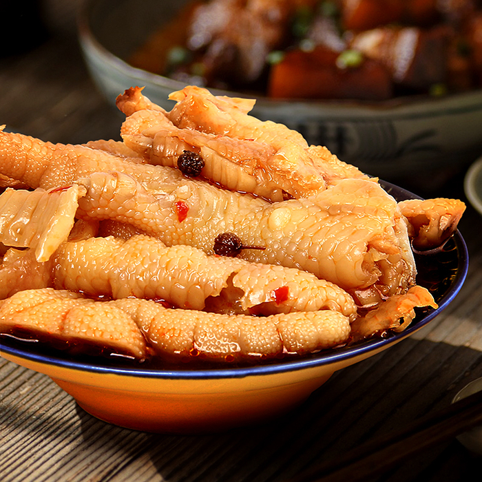 每一只爪子肉都是十分Q弹的,吃起来肉很有弹性,带点嚼劲!