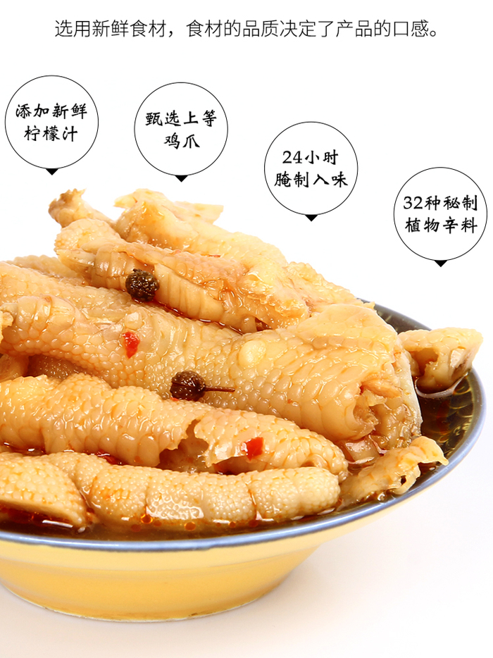 作为一款全民皆食的平价健康小吃,用去骨方便速食且独特酸辣爽口味的特点征服每个人的味蕾,让人人都能享用到柠檬凤爪的美味。