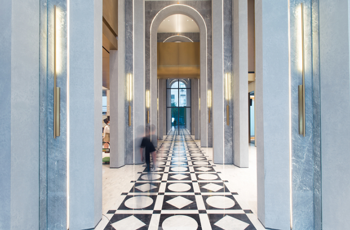 更加令人惊艳的是,华著兰庭项目以“中骨西韵”为理念,提取东方瑰宝云锦技法,将经纬纵横、明暗衬托、对称规则,以现代设计手法融入建筑立面、景观设计、室内精装,尽展世界风范。
