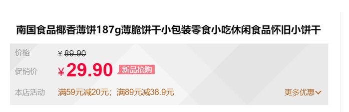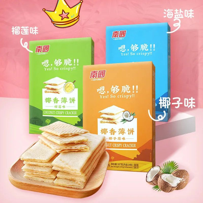 南国的这款椰味薄饼就完全解决了这一困扰,采用独立包装设计,一盒14袋,每袋有3块薄饼,量刚刚好。