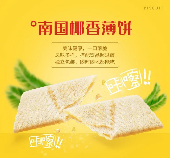 吃零食不仅要追求健康,味道也是非常重要的,“薄、脆、香”是椰味薄饼的一大特点。