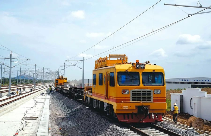 8月6日,轨道工程车在合安高铁庐江西站对铺设轨道的平整度及舒适度进行检测,并开始静态验收,这标志着合安高铁主体建设已经完成。