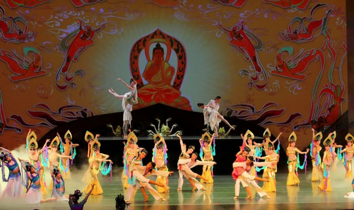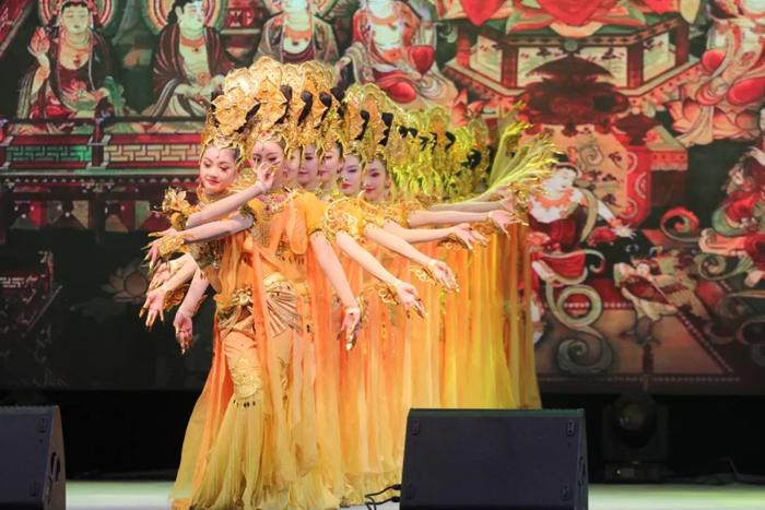 新版《丝路花雨》序幕《金光千佛》拉开了经典片段展演环节的帷幕。