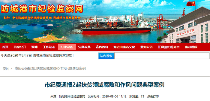2.防城区水产畜牧兽医局原局长黄寿强履职不力问题。2013年2月至2019年3月,黄寿强在担任防城区水产畜牧兽医局局长期间,违反工作纪律,履行监督管理职责不力,对扶贫项目审核把关不严,致使国家专项资金遭受损失。2020年6月,黄寿强受到党内警告处分。