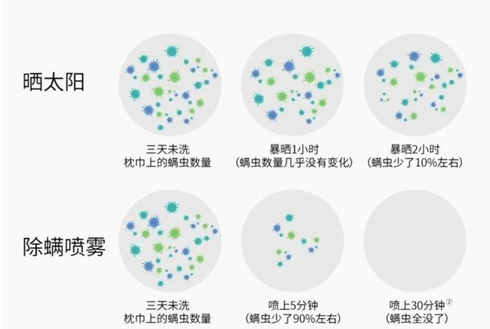 喷一喷,用不着多久,螨虫就会进入深度休眠状态。直到螨虫体内水分大量流失,螨虫就会干枯死亡!