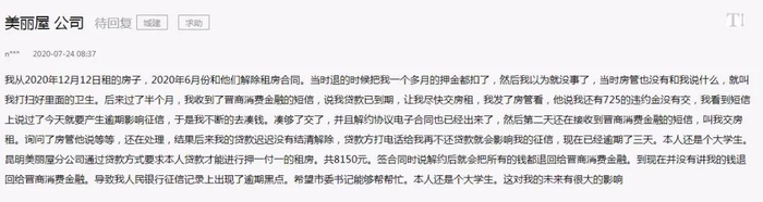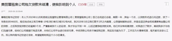 原标题:焦急!在“美丽屋”贷款租房之后,云南姑娘发现征信报告有逾期记录…