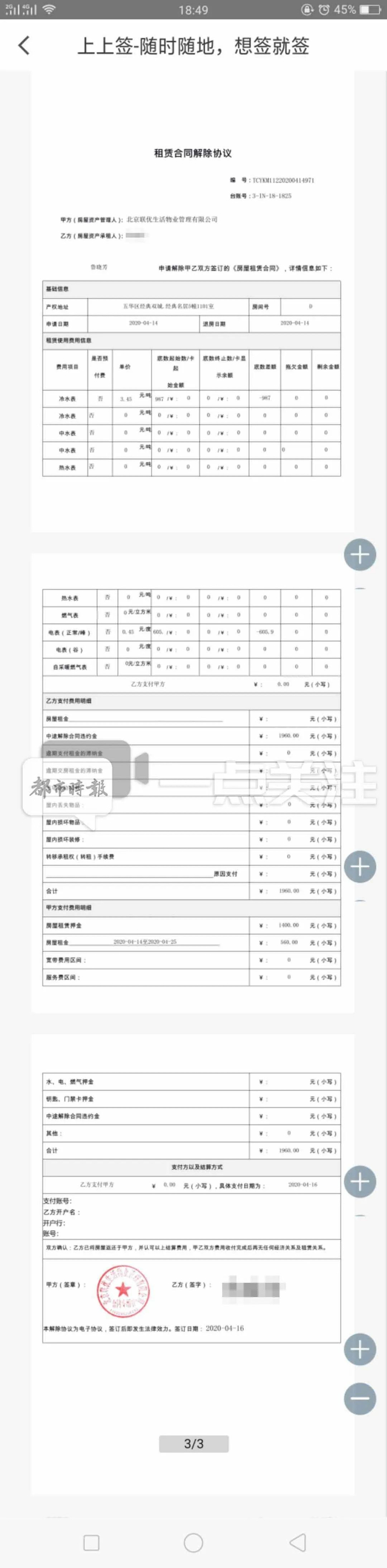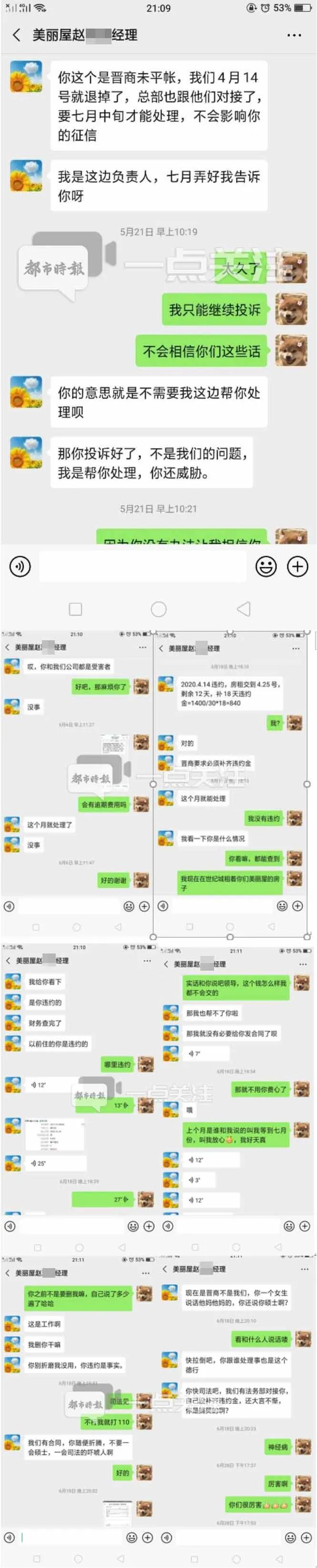 8月7日,聂同学又接到了腾房的微信。并需要缴纳违约金1700元。美丽屋APP李姓工作人员说:“我们只认合同。”