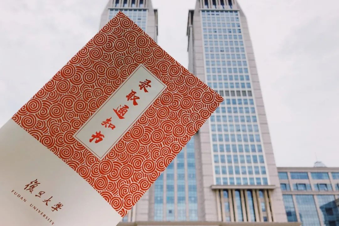 复旦大学录取通知书以复旦红为主调,如旭日东升,象征复旦人的青春朝气,表达学校对新生的祝福与欢迎。