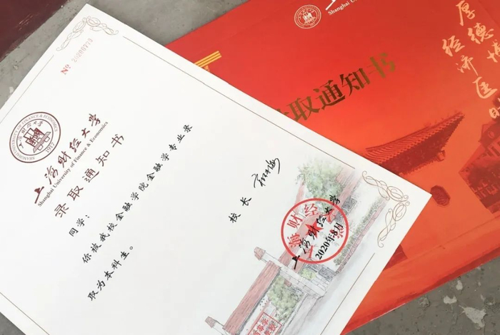 上海财经大学录取通知书,沿袭往年温馨、典雅、简洁的设计,以醒目大气的“上财红”为主色调,并以手绘国定大门图片为背景,突出上财“开门纳士、经济匡时”的寓意。今年随录取通知书一起寄送的还有《上海财经大学2020年度通识经典阅读推荐书目》,期望同学们养成良好的阅读习惯,在入学后,将经典阅读与学校第一课堂、第二课堂课程与活动安排结合起来,共同培育优良学风、校风,努力打造“书香校园”品牌。