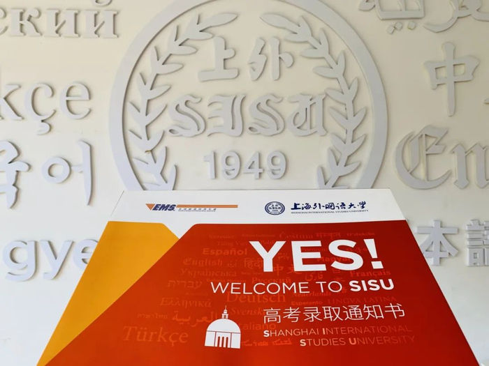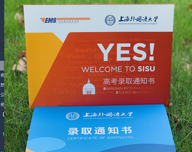 上海外国语大学录取通知书的封套上醒目的“YES!”占据C位,并装饰有不同文字书写的语言名称,独一无二的视觉设计,充分凸显上外的“多语种+”办学特色。录取通知书采用标识性的上外蓝配色,并绘有象征沟通世界的“&”辅助图形,反映上外“诠释世界、成就未来”的精神理想。