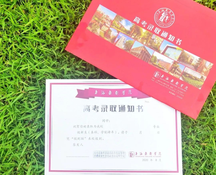 上海戏剧学院录取通知书上,13幅各个校区的照片在红色的衬托下熠熠生辉,它不仅是美丽校园的缩影,更是上戏文化的沉淀;它不单是一份录取通知书,也是靓丽的名片,让新生对校园充满了向往与憧憬。