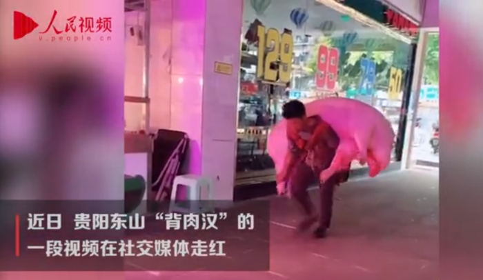 男子每天背上万斤猪肉养家