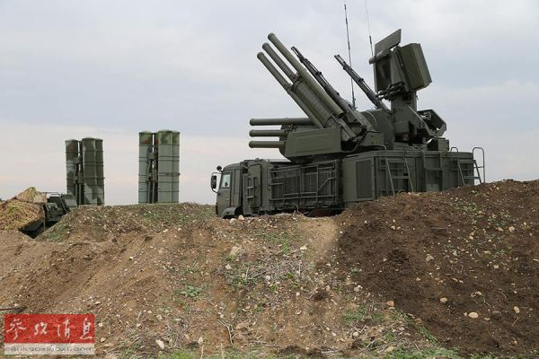 资料图片:部署在叙利亚赫梅米姆空军基地的俄军“铠甲”防空系统。