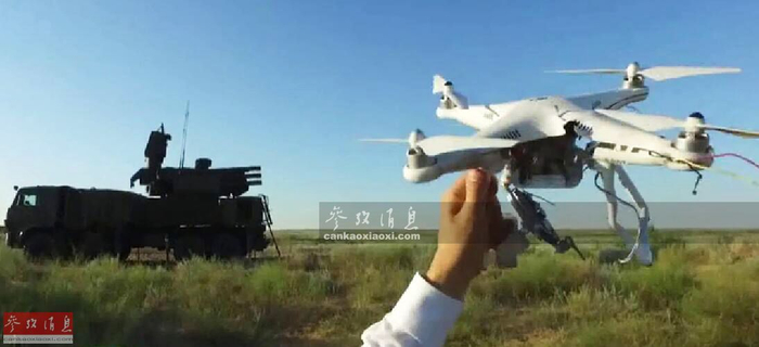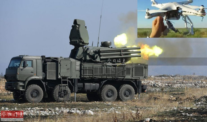 “铠甲-S1”使用30毫米高炮击落无人机动态图。