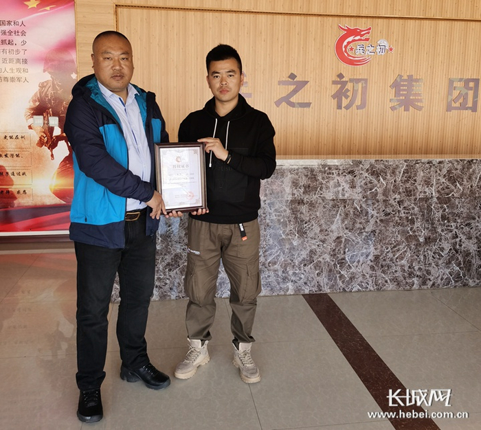 2020年度河北省“最美退役军人”获得者果海涛(左)。