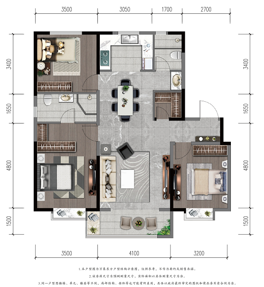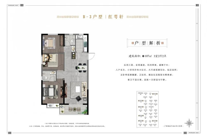 想要小面积低总价的,有100㎡左右的三室两厅两卫,首付大约33万元;这个户型,在一期推出的时候,可是最早被抢购一空的户型,这也得益于这个户型的超级实用性,符合现在年轻人的购房需求:多一个房间,多一个卫生间,生活多点独立空间!