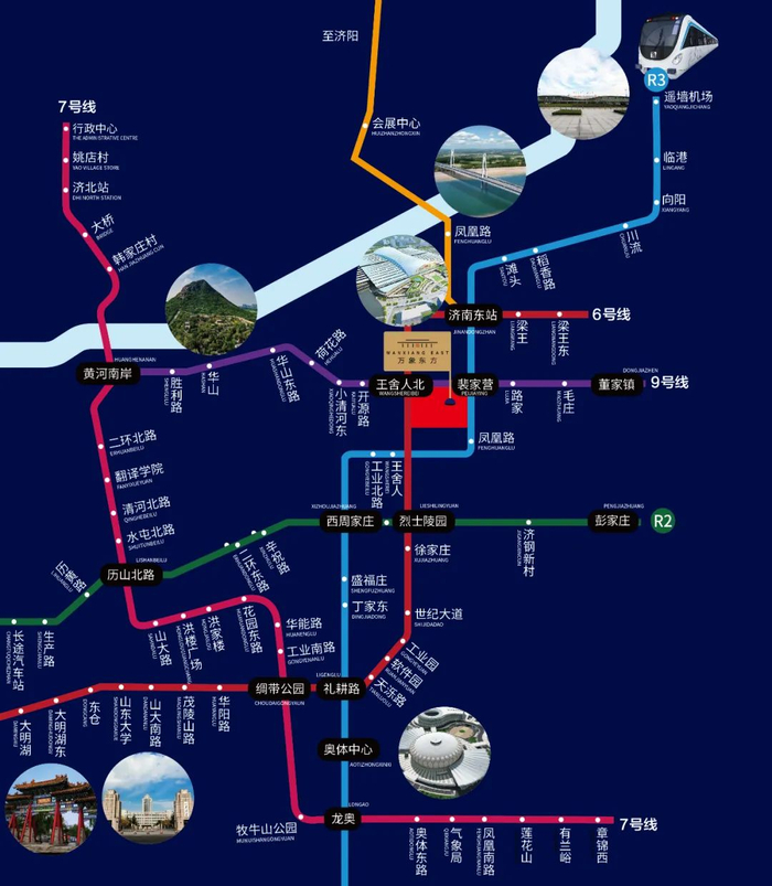 2019年9月28日济南R3线的正式通车。地铁,无疑是济南未来10年发展的地下引擎。具体到天鸿·万象东方,地铁优势更为明显——眼见为实,已经通车的地铁R3线裴家营站,就在项目东行约400米,步行3分钟可达。