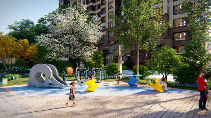进入大门,你会在天鸿万象东方的八个景观院落里,看到大量的邻里共处空间:阅读主题的风雨廊架、中庭,邻里互动交流的座椅,环形跑道,在消防扑救面地面上设置的可移动羽毛球场……城市里的院落,也要充满故事和温情。