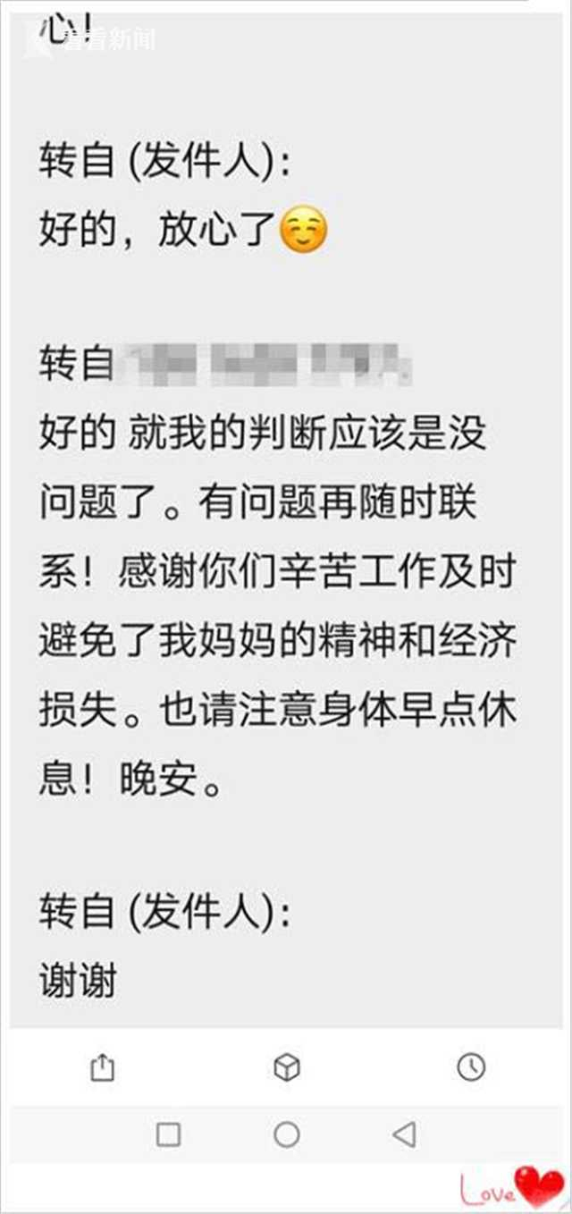 民警联想到这个情景与“邮箱类”婚恋诈骗的手法十分相似,经过现场劝说,王女士还是执拗不听,民警只能将王女士带回所继续工作。经进一步了解,这位王阿姨的“未婚夫”是近期从网上认识的,平时通过微信交流,且该收款帐户为建行的个人帐户。在民警孜孜不倦长达一个多小时的耐心劝导下,当事人最终放弃了汇款的念头。但民警心里还是有点不踏实,马上联系王女士在徐汇区工作的女儿,让其女儿了解一下母亲情况,以防后续再受骗上当。当日晚上,王女士女儿回电称其母亲已完全醒悟,已经删除了对方所有联系方式,并对民警成功为其母亲挽回5万元损失表示感谢。