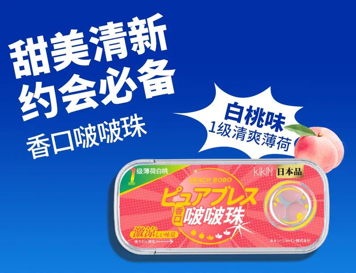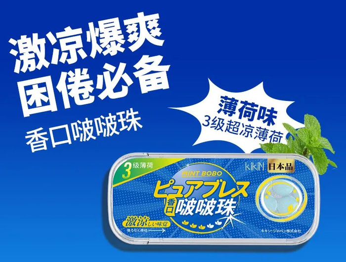 1、超强3级薄荷力的激凉薄荷味,添加日本白桃的甜美白桃味,从嘴巴激凉爆爽到胃部,1颗口气清新,2颗提神醒脑。