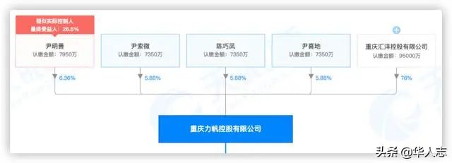 而根据“天眼查”的数据,这个“力帆控股”实际上就是力帆集团创始人尹明善一家人控制的公司。法人为其妻子陈巧凤,而股东中有尹明善和他的一双儿女。