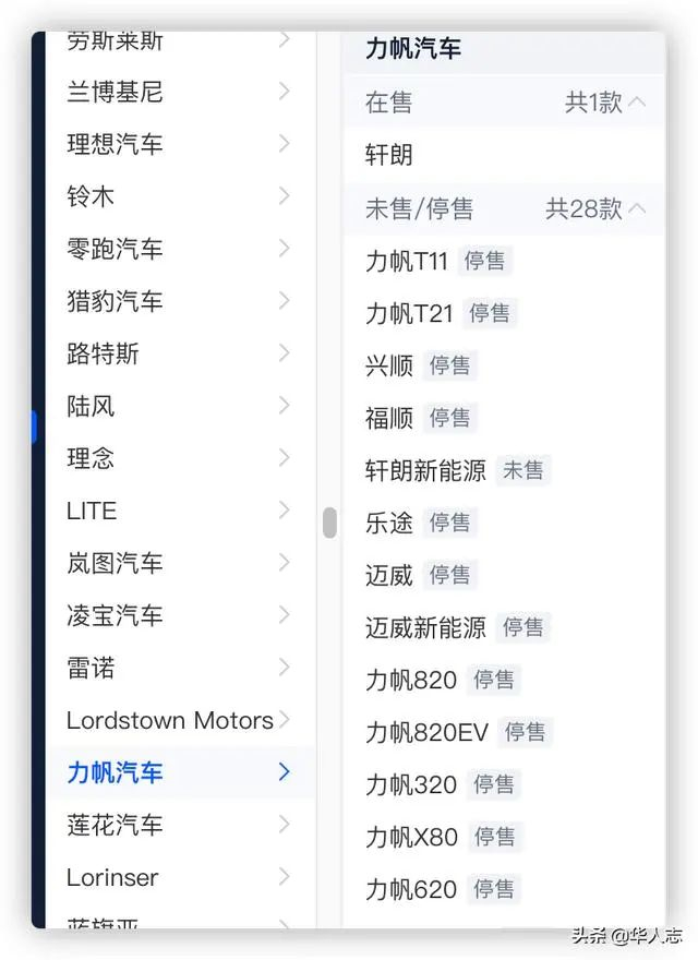 十几年来力帆共推出各类汽车28款,如今只有1款在售,27款停产或者停售。