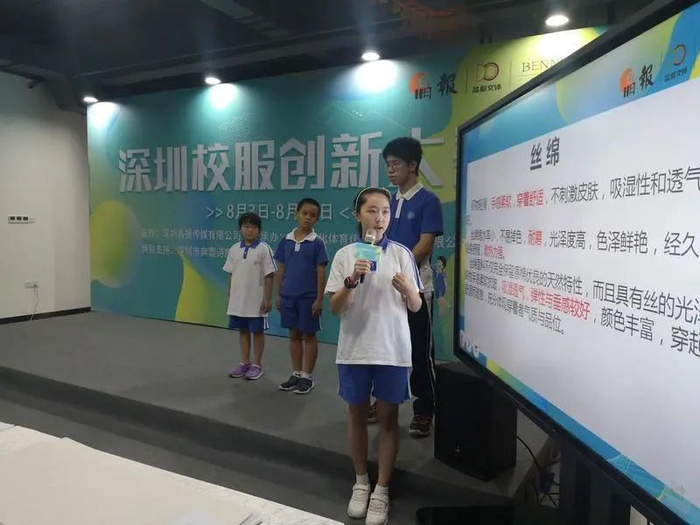 此次“校服材质创新大赛”由深圳市奔霓诗服装有限公司全程支持。“奔霓诗”BENNIS作为深圳知名校服品牌,旗下服装新材料研究院致力于新材料研发与应用,对于深圳校服等专业服装设计生产有着独到经验。“奔霓诗”BENNIS在作为深圳校服供应商的同时,主动承担社会责任,对此次大赛的技术、场地、奖金等均提供了有力支持,希望在社会实践中激发孩子们的自主创新意识。