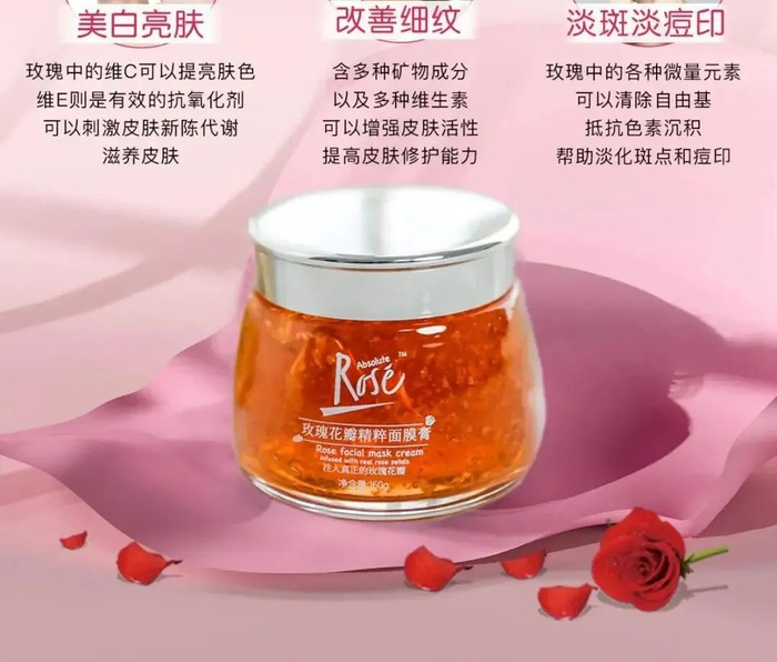 融入了玫瑰原浆、玫瑰精油、玫瑰纯露